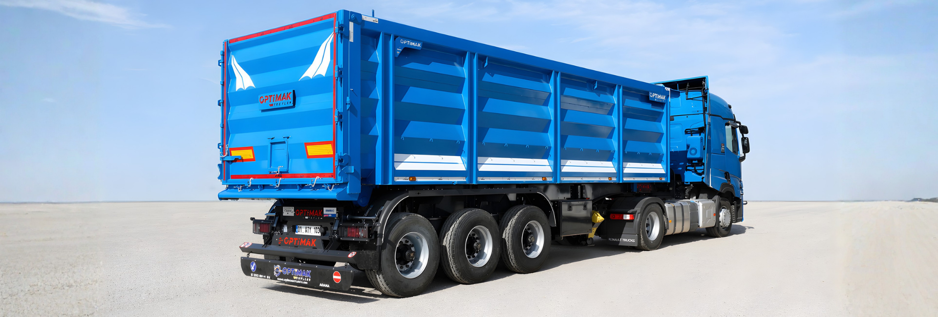 Adana’daki modern üretim tesislerinde faaliyetlerini sürdüren Optimak Treyler; küvet damper, kapaklı damper, akordiyon damper, konteyner taşıyıcı, low-bed ve platform treyler gibi geniş ürün yelpazesiyle her türlü yük için ideal çözümler sunmaktadır.
